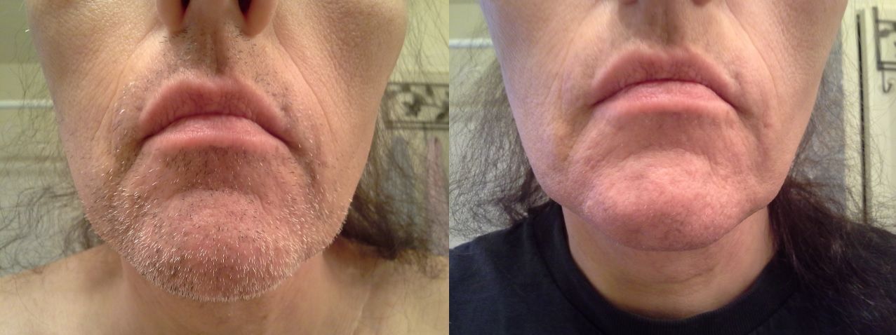 Below are the before and after for session 3, on April 4, 2014. Of note to me, I am seeing significant change in the upper and lower lip area between session 1 before and session 3 before. The chin and jawline are still pretty dense.